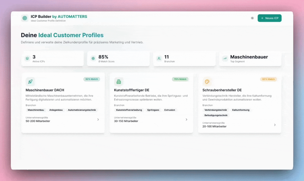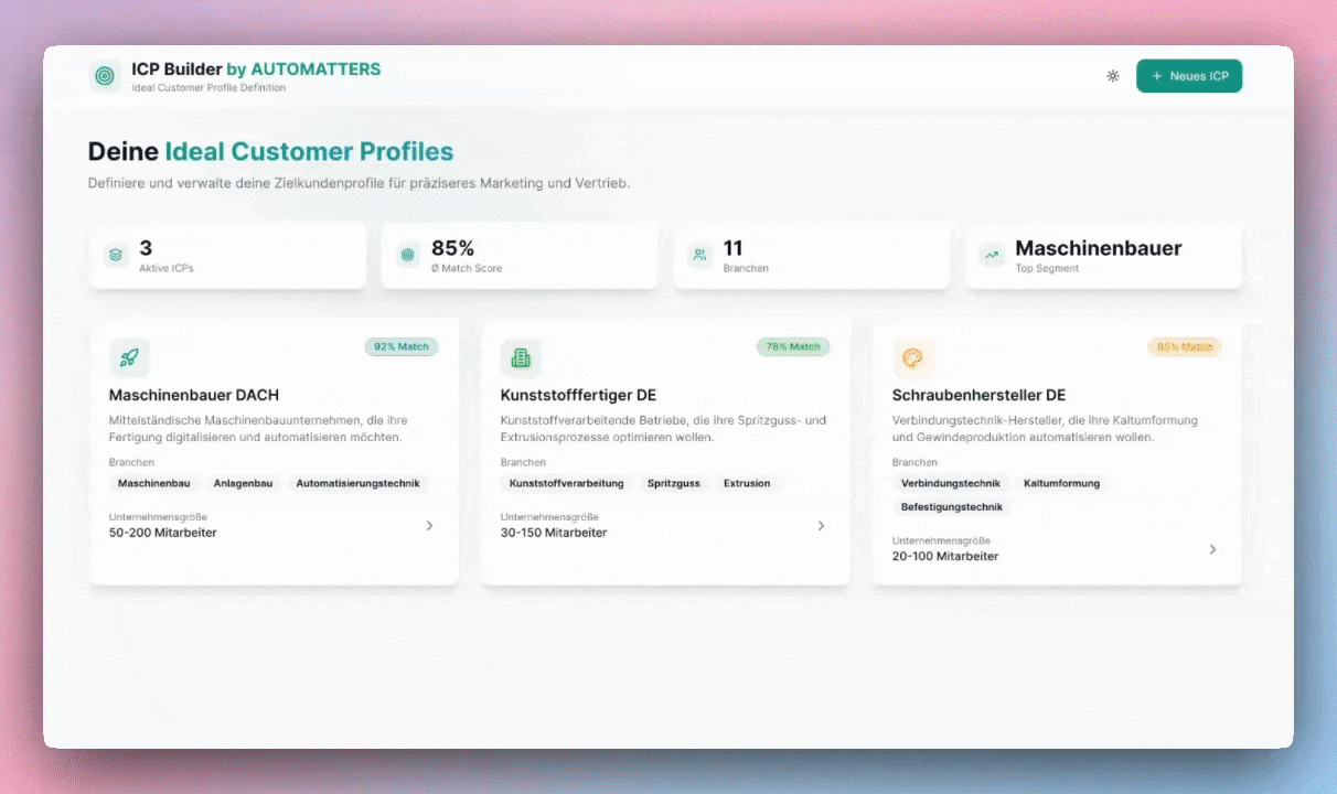 Es ist ein System, das eure Vertriebsvorbereitung in klare, messbare Schritte übersetzt – von der Zielkundendefinition bis zur Kontaktstrecke.